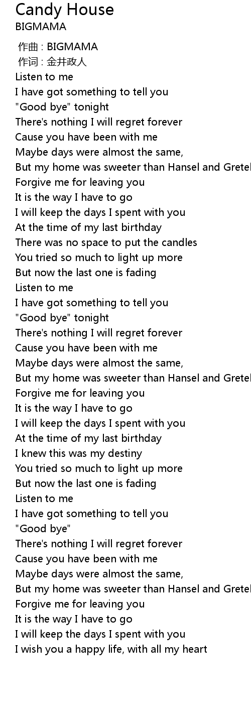 | [03:35.97] | But my home was sweeter than Hansel and Gretel's |