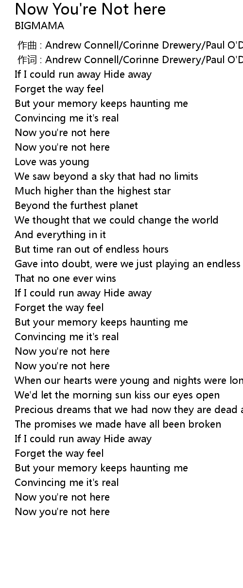| [02:28.41] | Now you' re not here |
