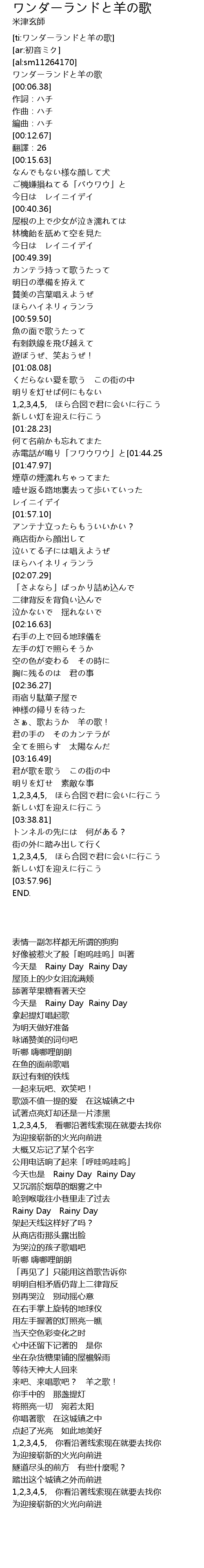 | [00:05.23] | ワンダーランドと羊の歌 |