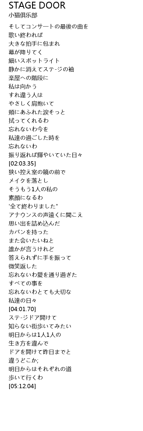 | [04:16.22] | ステ-ジドア開けて |