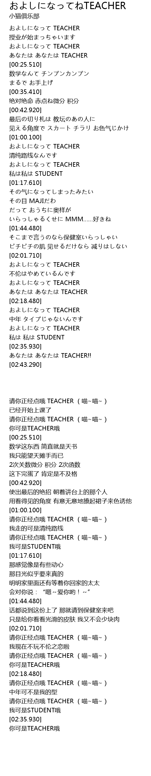 | [02:37.070] | あなたは あなたは TEACHER!! |