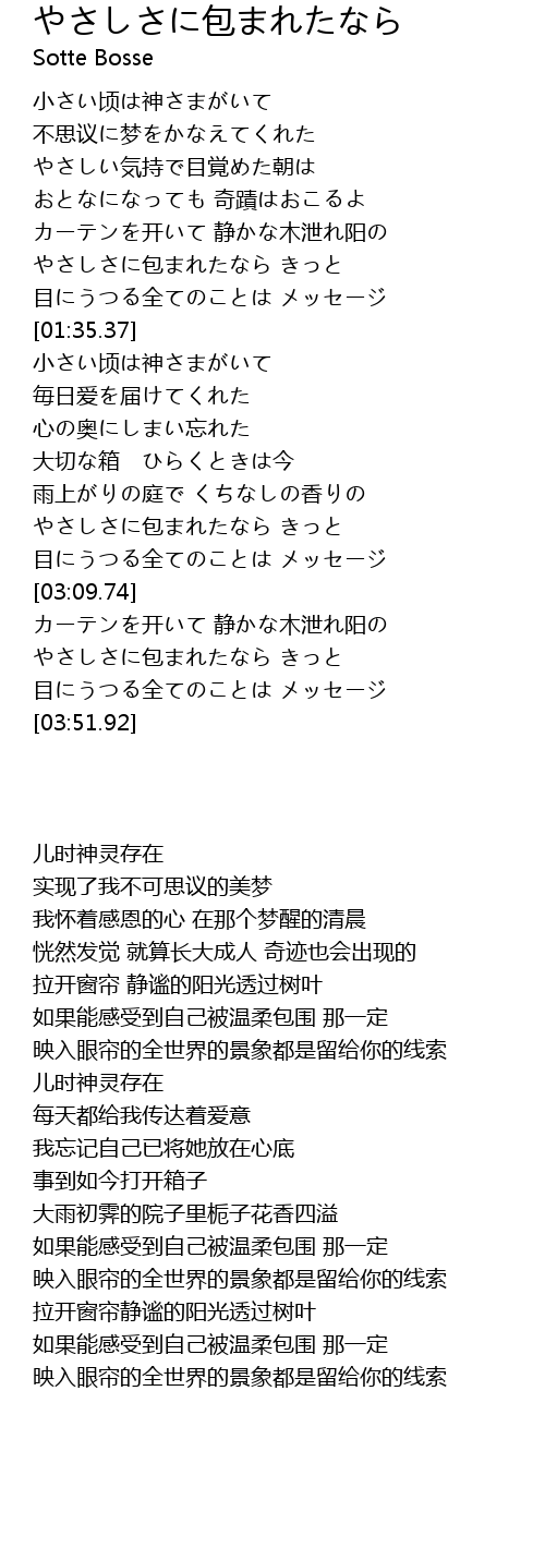 やさしさに包まれたなら きっと |