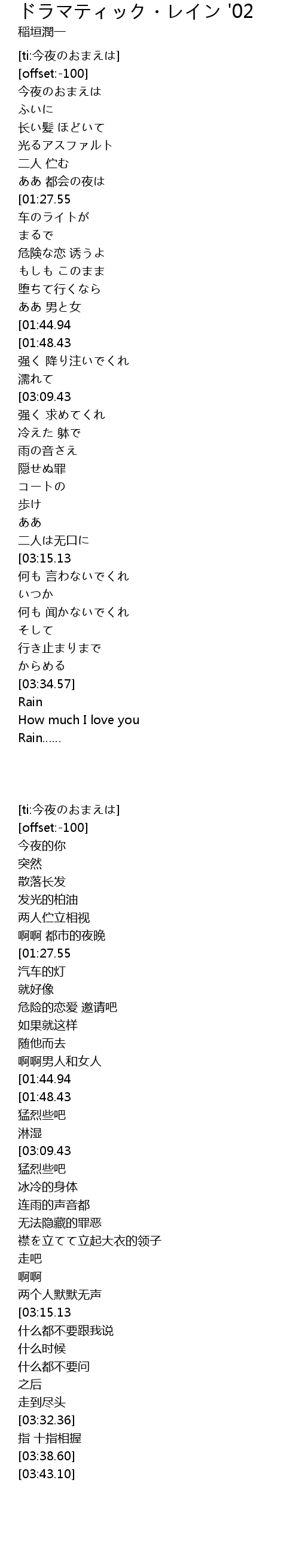 | [01:31.98][01:44.94][02:59.09][03:12.04] | レイン |