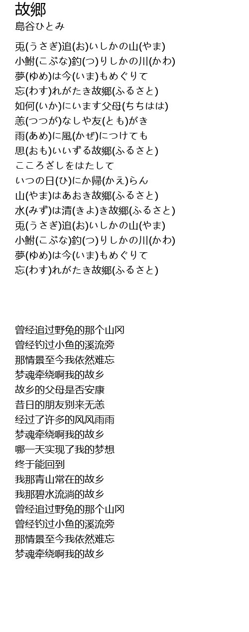 兎(うさぎ)追(お)いしかの山(やま) |