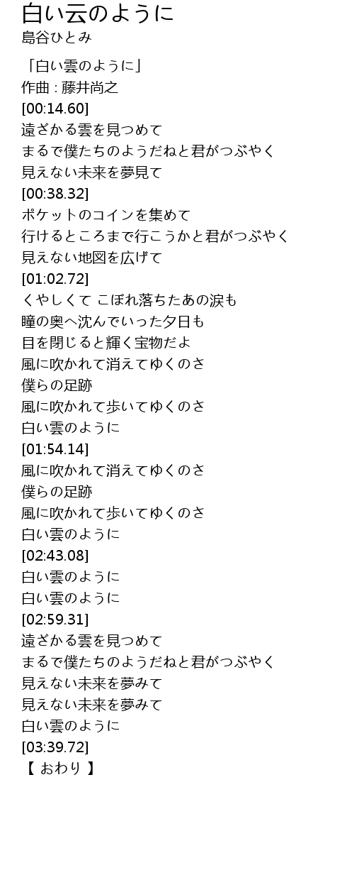 | [03:02.53] | 遠ざかる雲を見つめて |