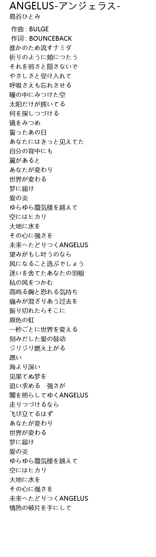 | [02:48.07] | 闇を照らしてゆくANGELUS |