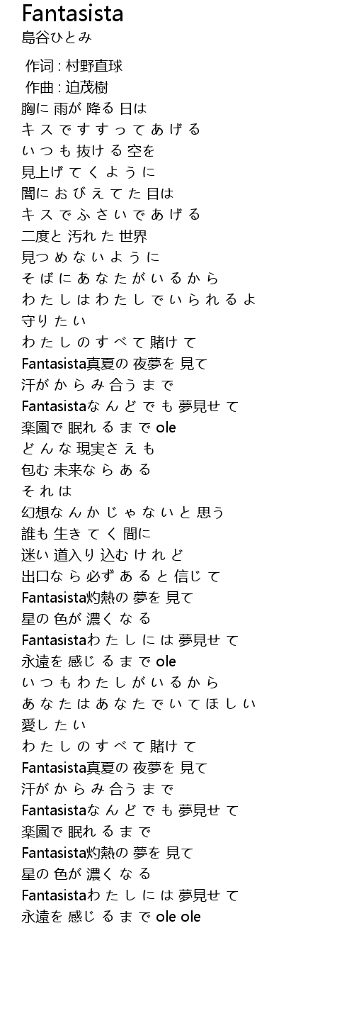 | [03:38.35] | Fantasista真夏の 夜夢を 見て |