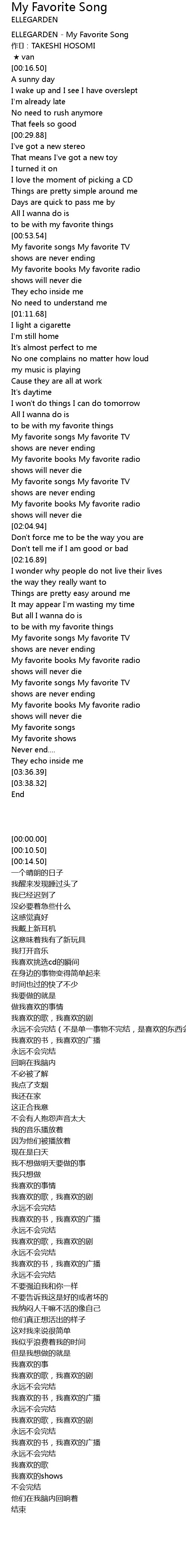| [00:00.00] | ELLEGARDEN My Favorite Song |