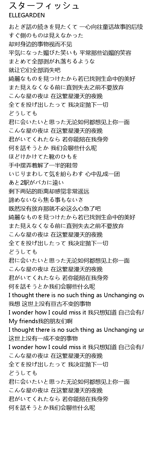 | [02:32:00] | I thought there is no such thing as Unchanging until it ends wǒ xiǎng zhè shì shàng méi yǒu yī chéng bù biàn de shì wù |