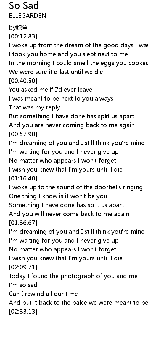 | [00:32.21] | In the morning I could smell the eggs you cooked for me |