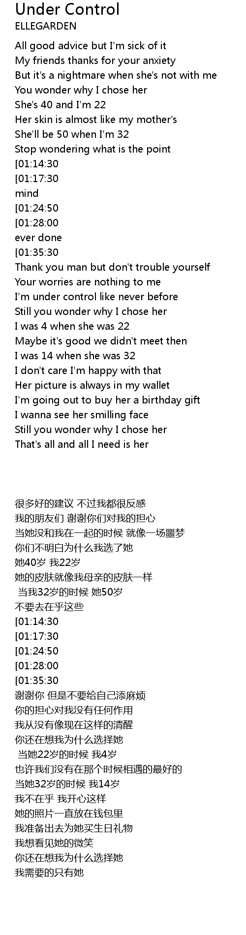 I'm under control like never before |