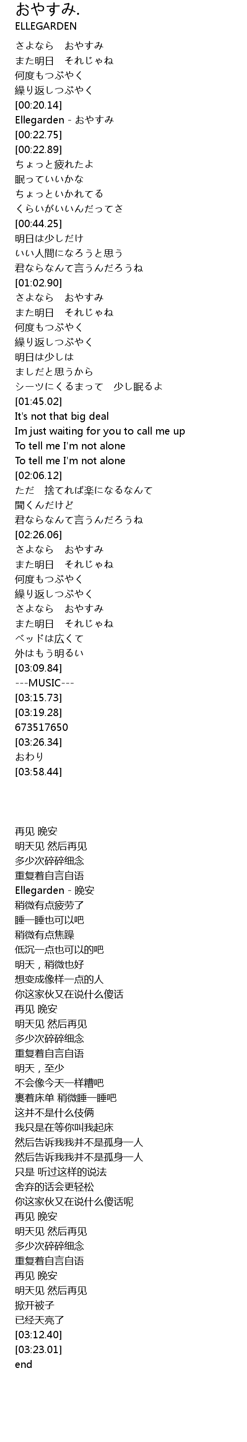 | [02:26.66] | さよなら おやすみ |