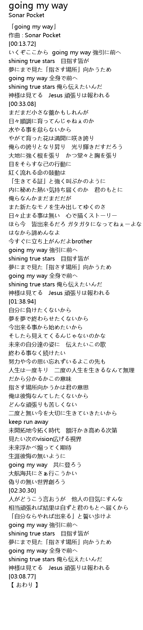 | [03:00.73] | going my way 全身で前へ |