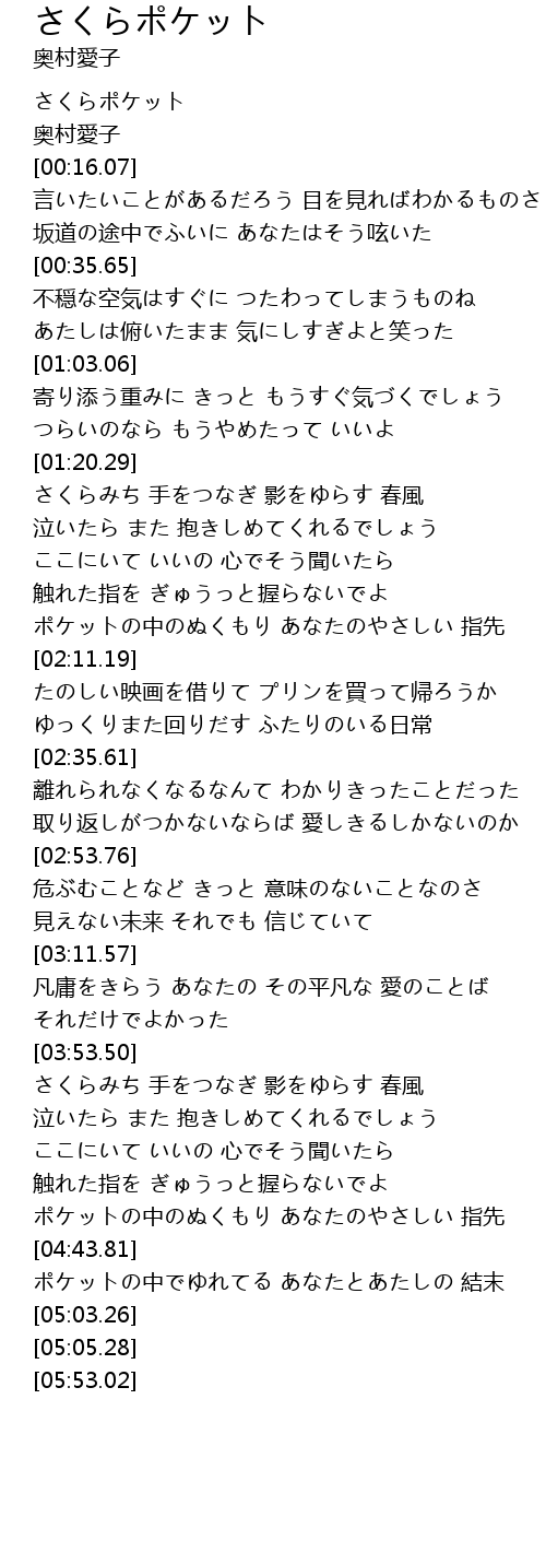 ポケットの中のぬくもり あなたのやさしい 指先 |