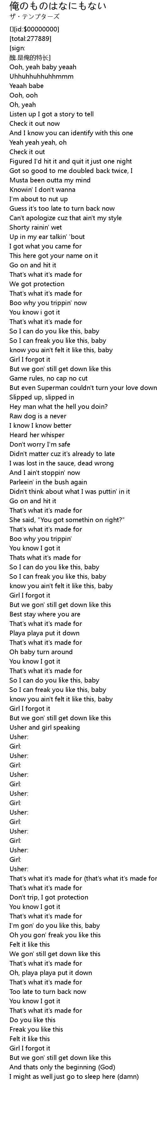 | [03:29.333] | That's what it's made for (that's what it's made for) |