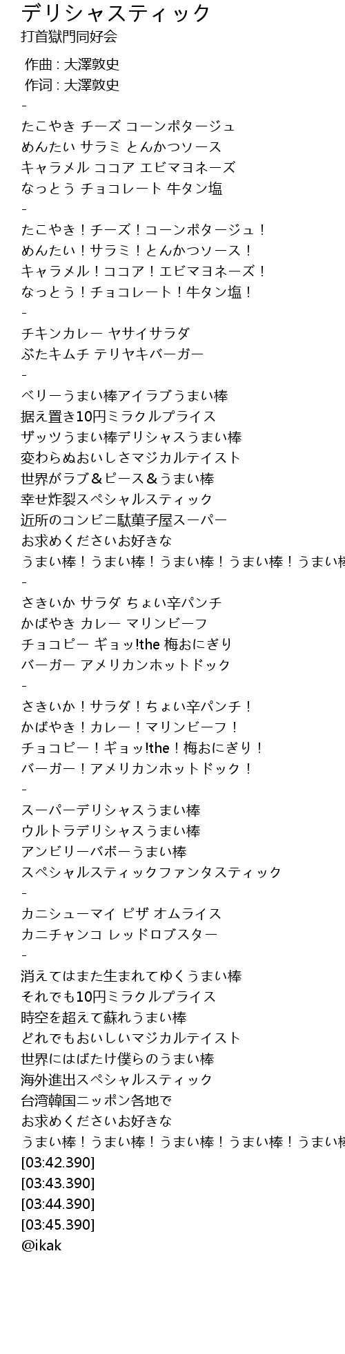 | [02:23.290] | スーパーデリシャスうまい棒 |