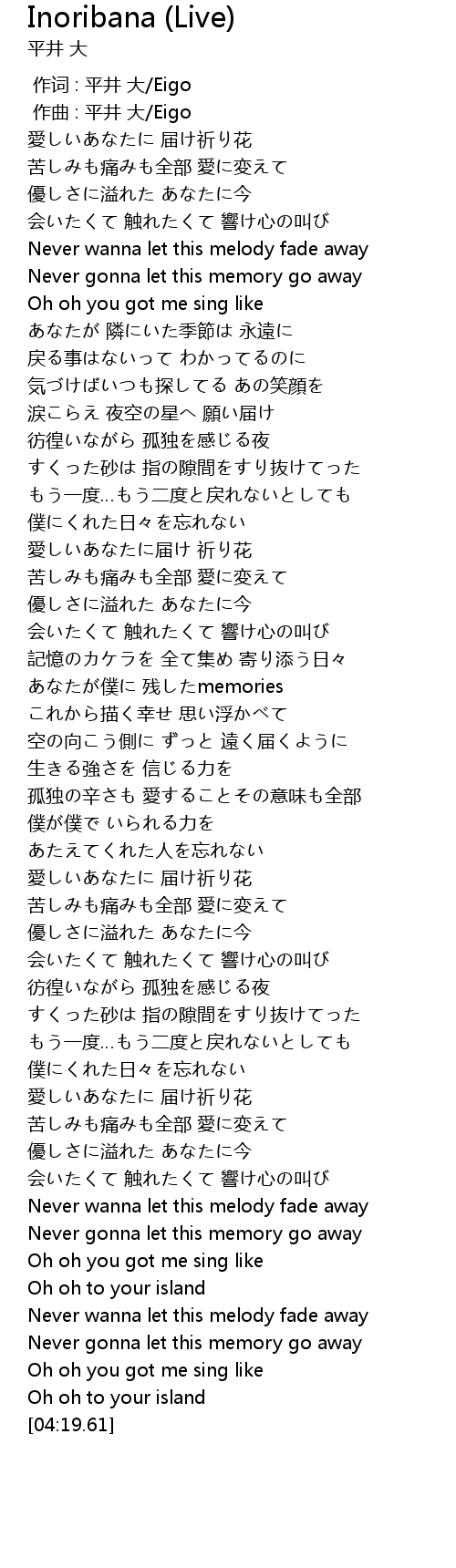 | [00:00.000] | 作词 : 平井 大/Eigo |