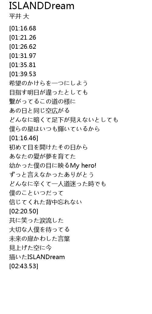 | [03:22.40][01:35.81][00:31.47] | shi ISLANDream |