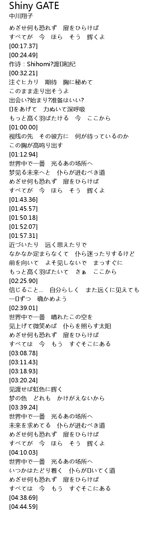 | [04:24.41] | めざせ何も恐れず 扉をひらけば |