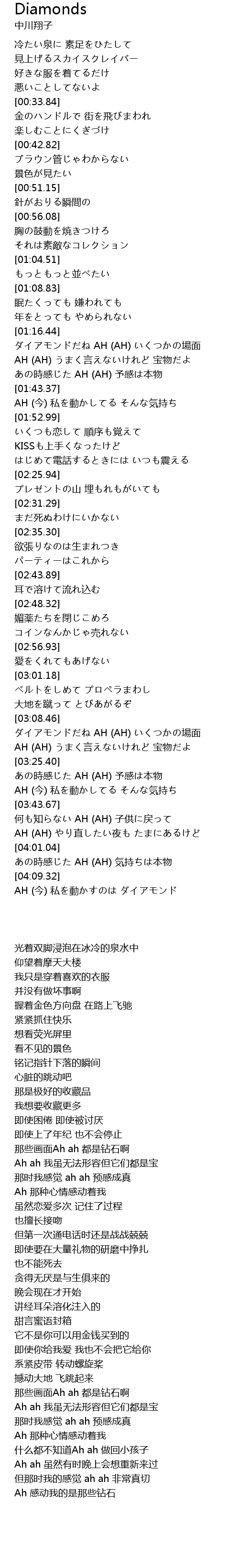 | [04:11.00] | AH (今) 私を動かすのは ダイアモンド |