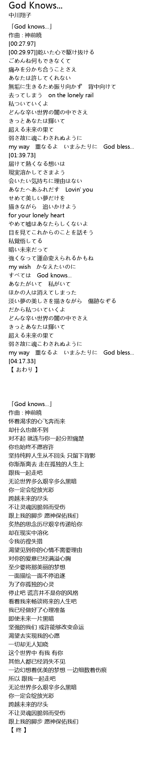 | [00:01.97] | 「God knows...」 |