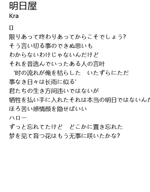 | Song | 明日屋 |