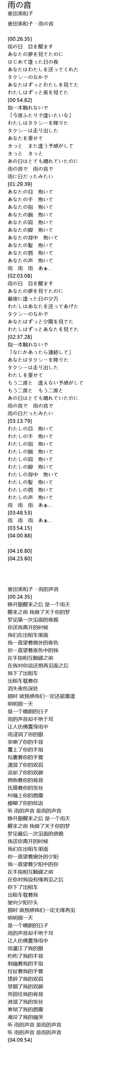 奥田美和子 - 雨の音 |