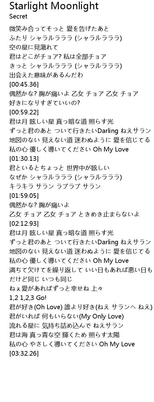 | [01:55.15] | キラキラ サラン ラブラブ サラン |