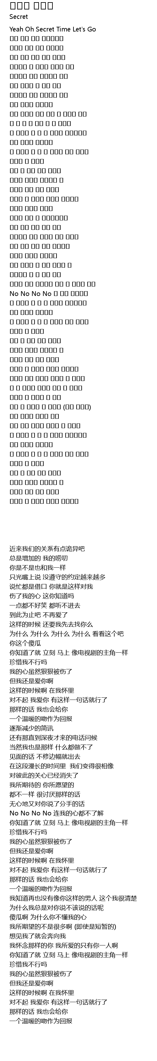 | [00:03.310] | Yeah Oh Secret Time Let' s Go |