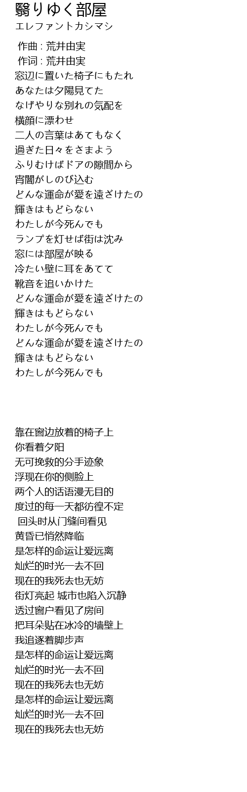 | [00:36.25] | 窓辺に置いた椅子にもたれ |