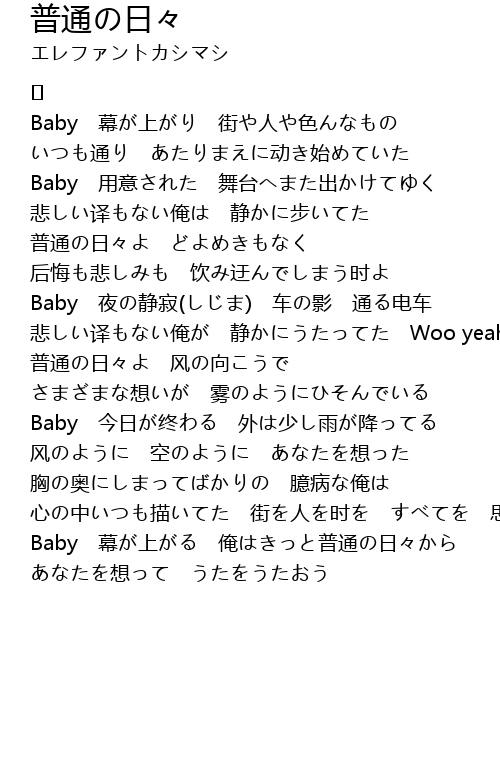 | Baby 今日が终わる 外は少し雨が降ってる | |