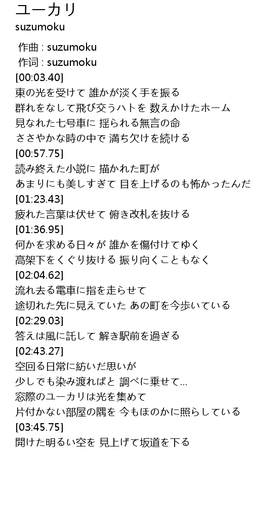 | [00:01.00] | 作词 : suzumoku |