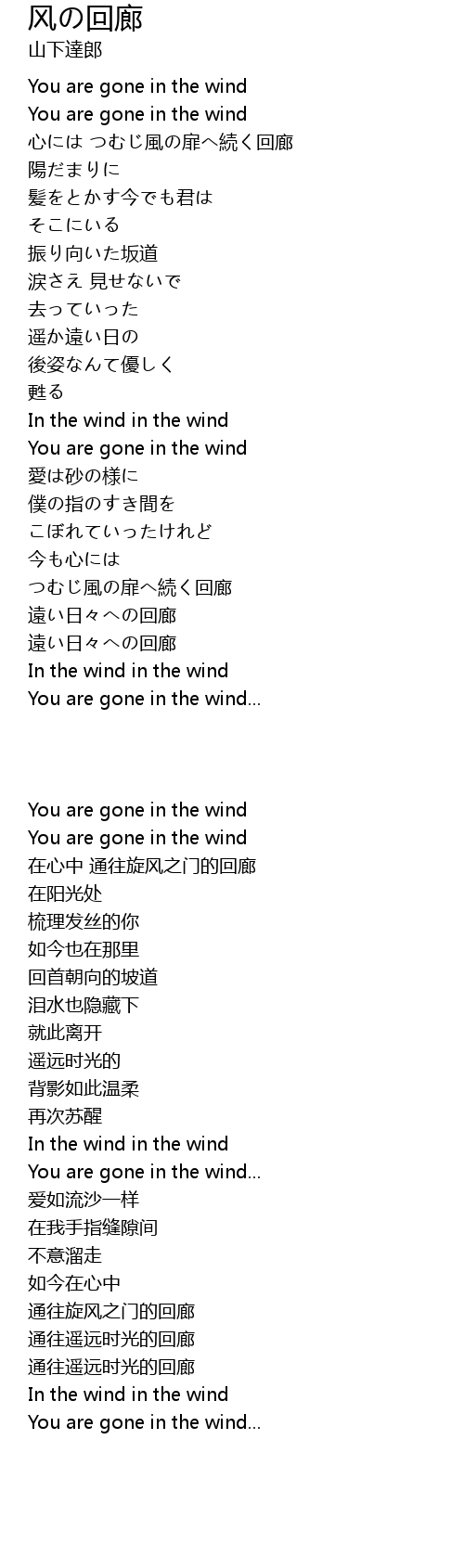 | [00:08.87] | You are gone in the wind |