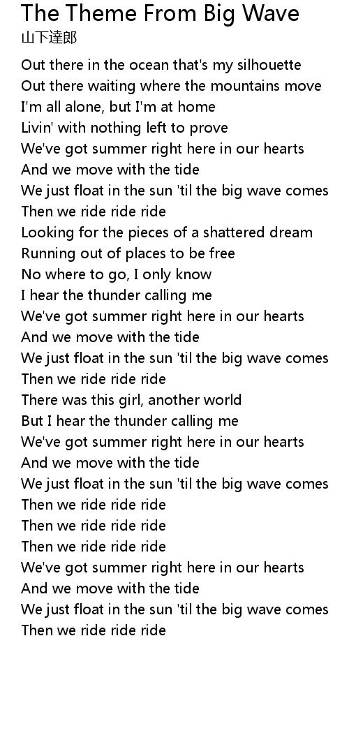 | [02:59.148] | We just float in the sun 'til the big wave comes |