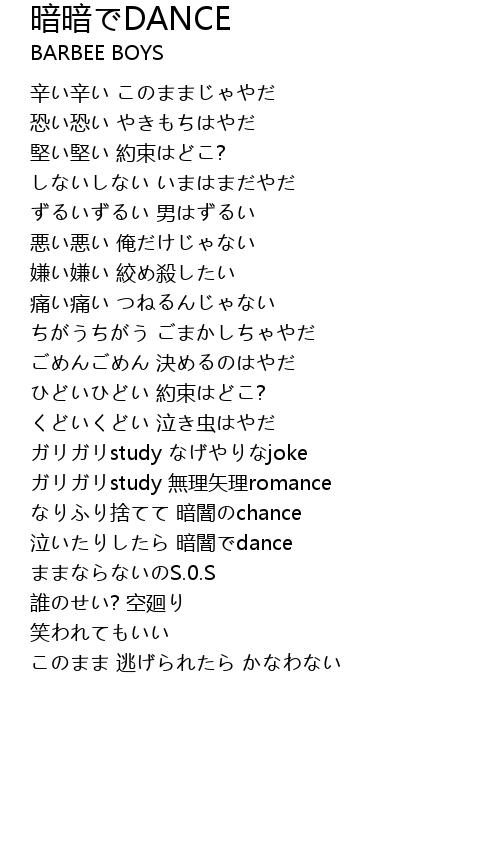 | 泣いたりしたら 暗闇でdance | |