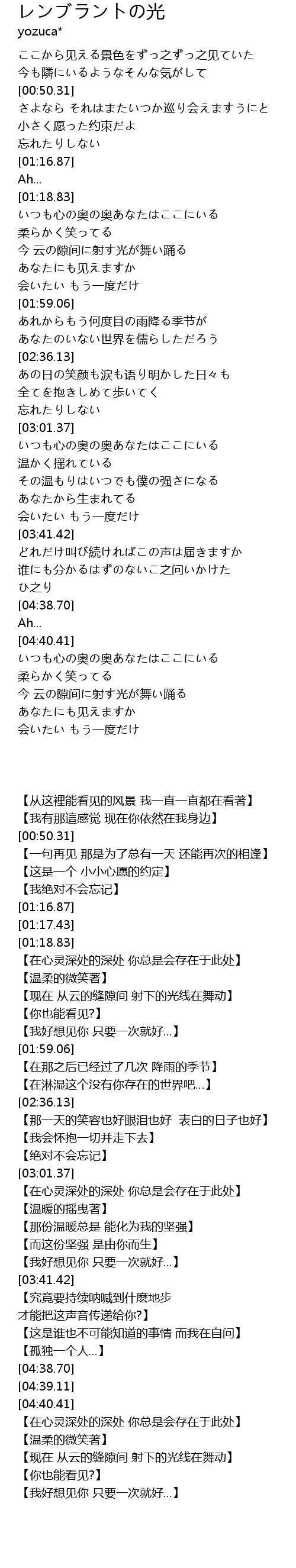 | [04:40.64] | いつも心の奥の奥あなたはここにいる |