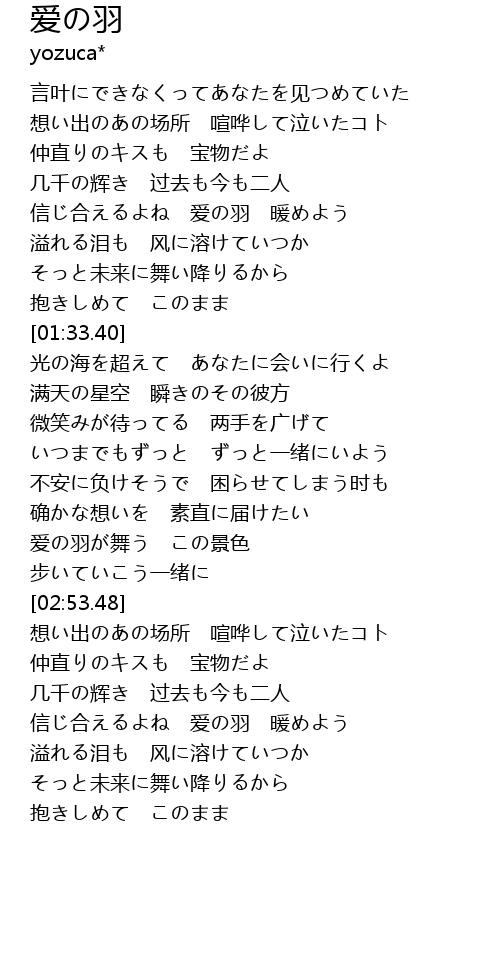 | [02:40.01] | 爱の羽が舞う この景色 |