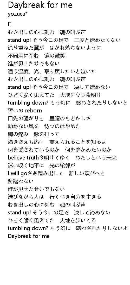 | tumbling down? もう幻に 惑わされたりしないよ | |