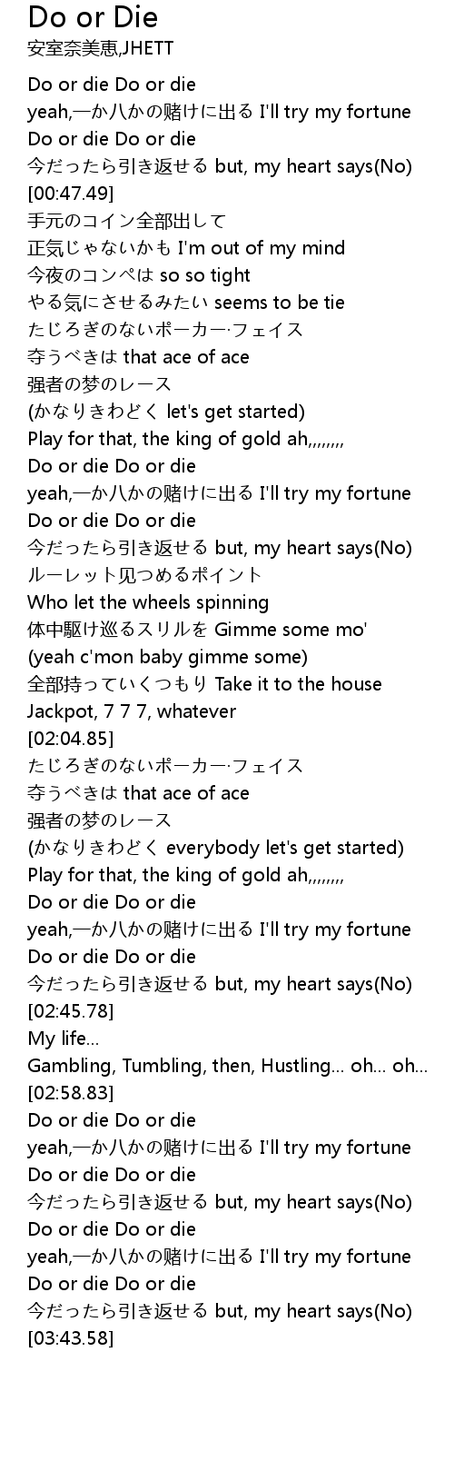 | [02:49.39] | Gambling, Tumbling, then, Hustling... oh... oh... |