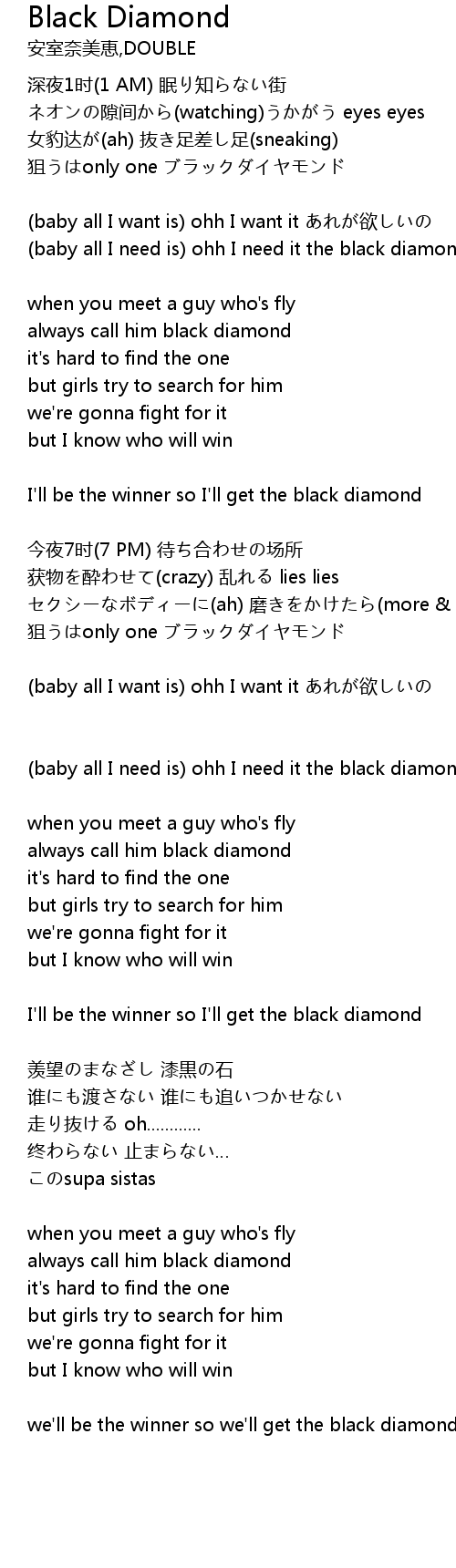 | (baby all I need is) ohh I need it the black diamond is mine | |
