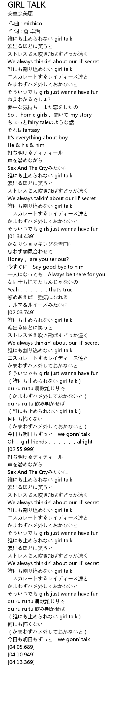 | [03:33.959] | 誰にも割り込めない girl talk |