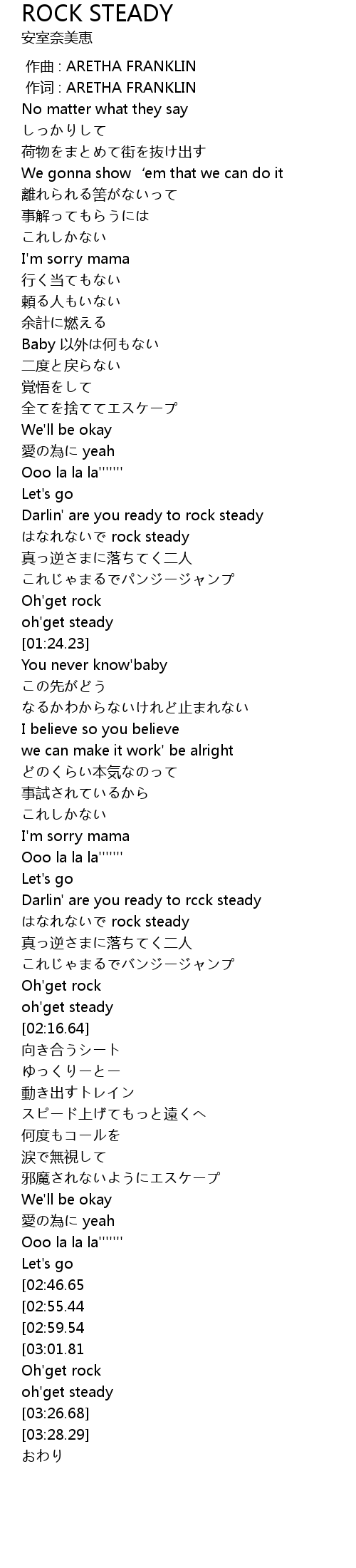| [03:04.19][02:46.65] | Darlin' are you ready to rock steady |