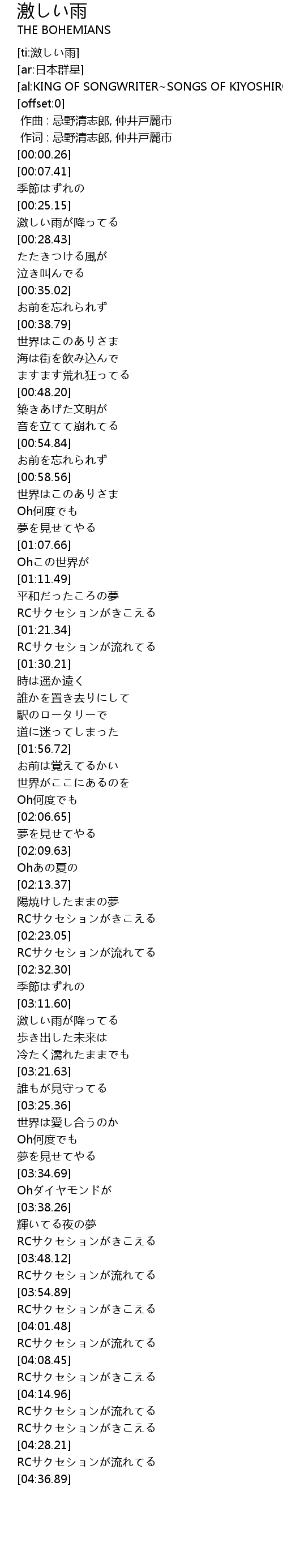 | [00:00.00] | 作曲 : 忌野清志郎, 仲井戸麗市 |