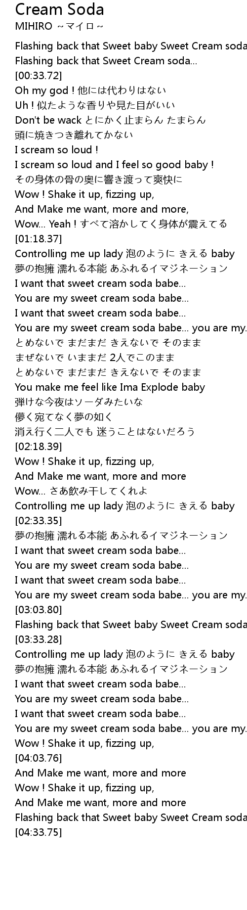 | [01:44.02] | You are my sweet cream soda babe... you are my... |