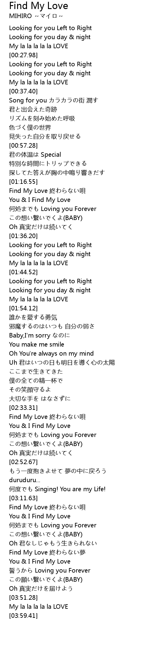 | [03:11.94] | Find My Love 終わらない唄 |