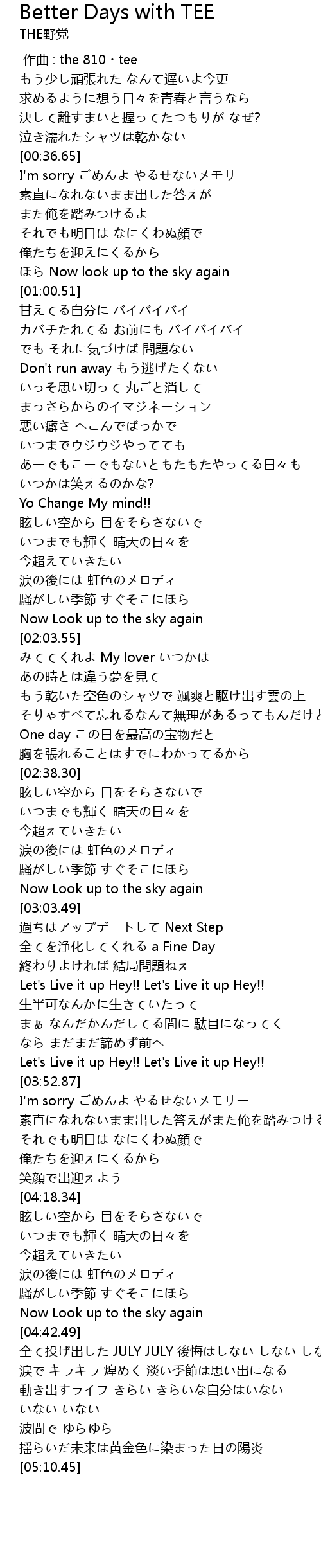 | [03:37.71] | Let's Live it up Hey!! Let's Live it up Hey!! |