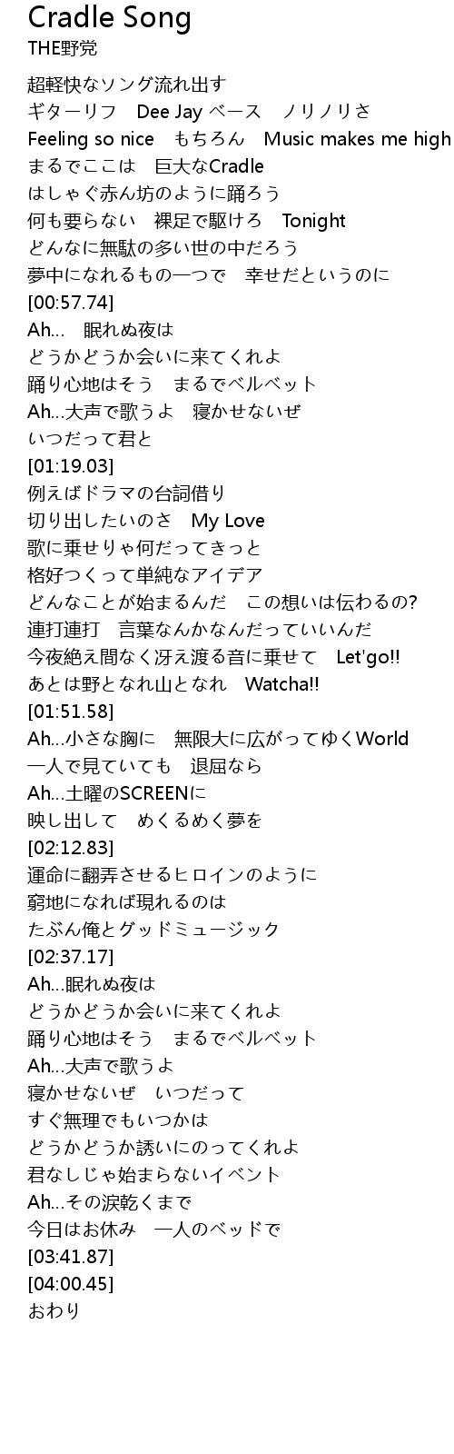 | [00:29.59] | Feeling so nice もちろん Music makes me high |