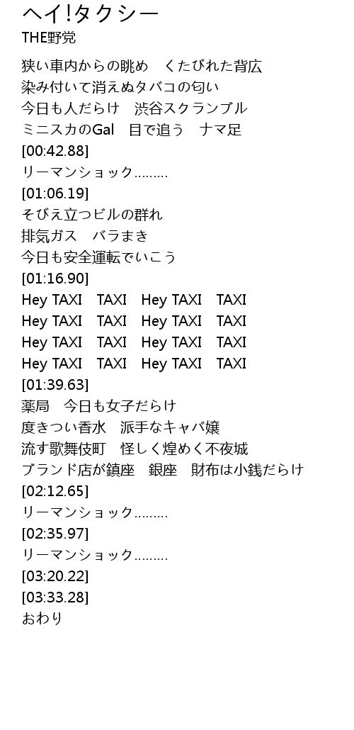 | [01:34.49] | Hey TAXI TAXI Hey TAXI TAXI |