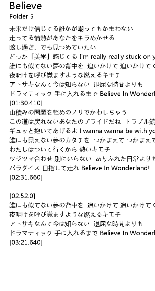 | [03:12.920] | shǒu rù Believe In Wonderland! |