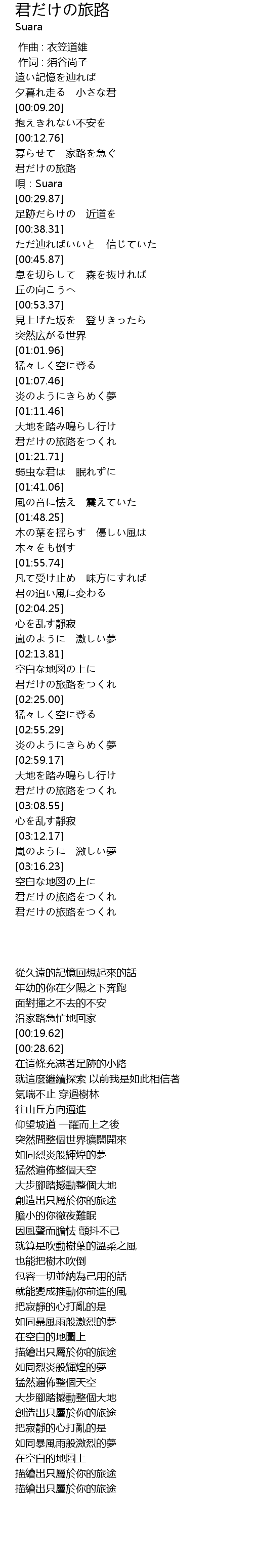| [00:00.00] | 作曲 : 衣笠道雄 |